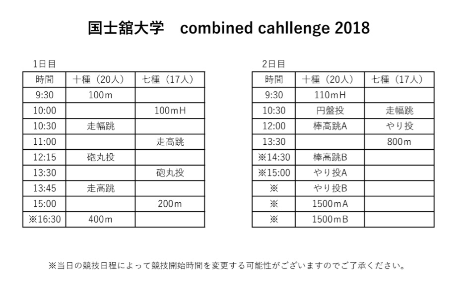 国士舘大学で明日より行われる、コンバインドチャレンジ