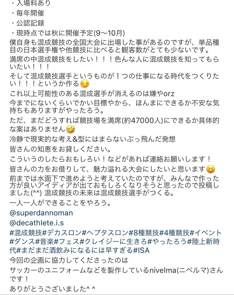 しかし、混成競技に携わる人が、混成競技を盛り上げるために本気になったら、もっといろんなことができるはず!