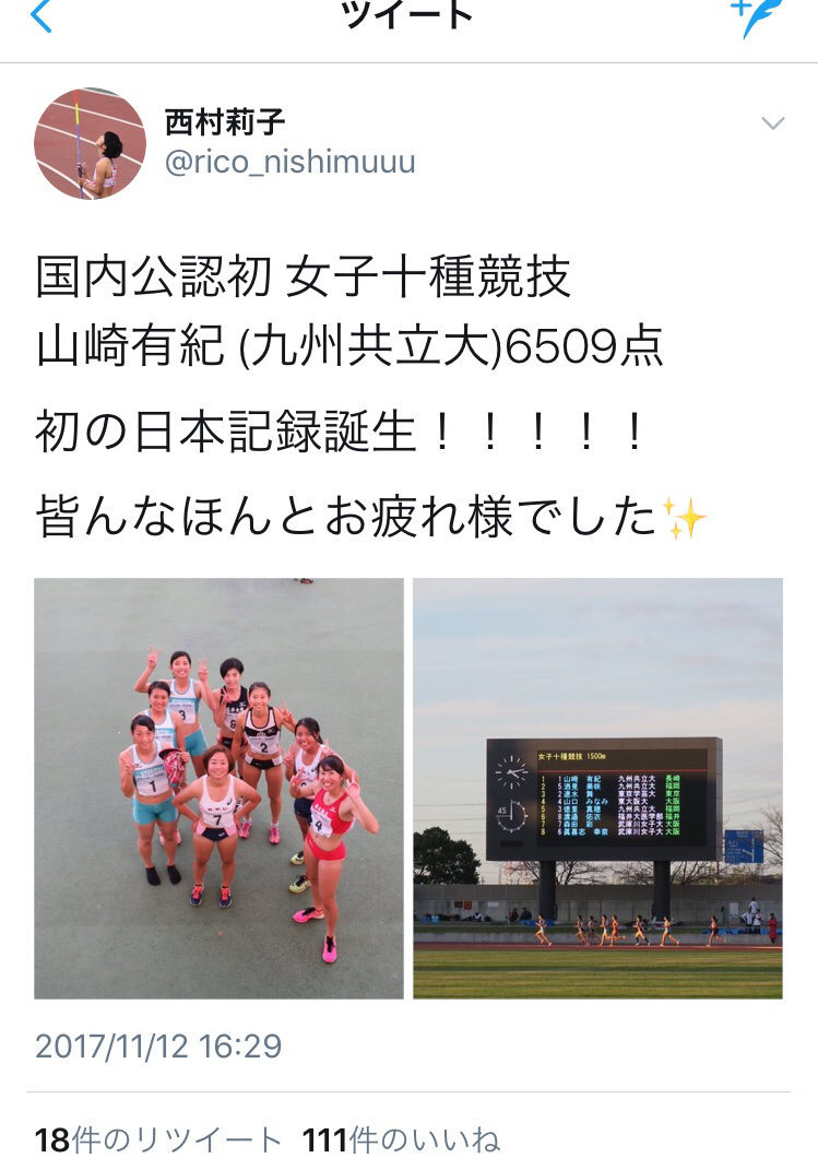 なんと七種競技種目別日本記録保持者(やり投げ)の西村莉子さん