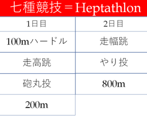 「陸上競技において、複数の種目を同一競技者が行い、その記録を得点化して競う種目」